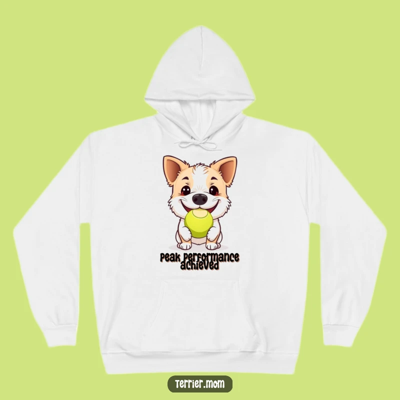 Stay warm and ready for action with this funny kawaii terrier hoodie. Features an excited terrier with perky ears in hot pursuit of a ball.